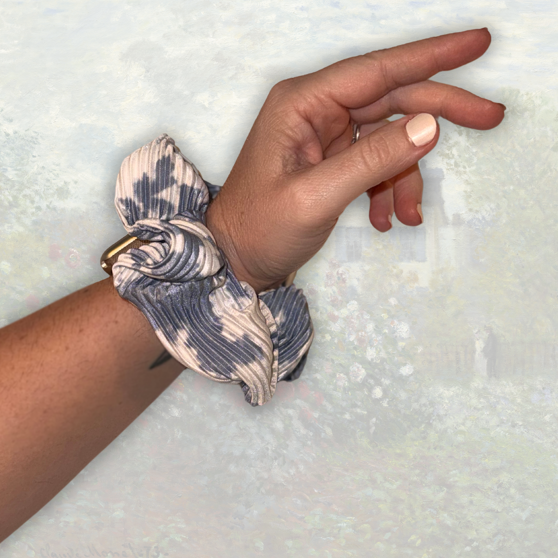 Oversized in all ways! More scrunch to the fabric and looser fitting for extra thick hair. This is your go-to if you like a looser hold, have more hair to hold up and/or love the "mega scrunch" look!